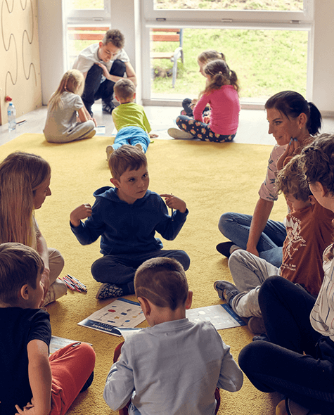 W trakcie warsztatów rozmawiamy z dziećmi o nowych technologiach, angażujemy je w tematyczne zabawy grupowe, oraz w pracę indywidualną na podstawie naszych Bajek Zaktualizowanych.