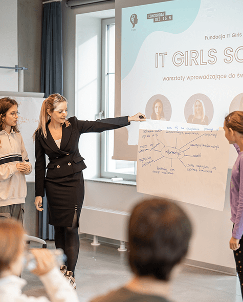 Warsztaty fundacji IT Girls mają na celu inspirowanie i zachęcanie młodzieży do podjęcia kariery w branży technologicznej. Pokazujemy, że praca w IT nie oznacza wyłącznie programowania i wiele osób, o różnych predyspozycjach i charakterze może się w niej odnaleźć.